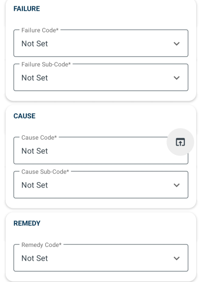 Failure Code and Sub-Code: The drop-down list details the failure code and sub-code that is populated as a result of the FCR that is allocated to an asset category.