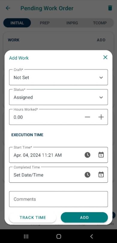 Completed Time: This is manually edited by selecting the calendar button to change the date and the clock button to change the time to reflect the actual finish time.