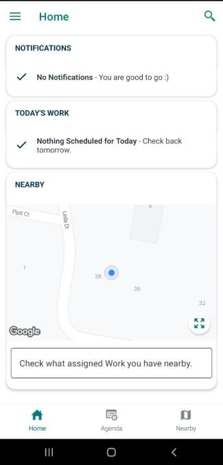 To create a Work Order against an asset selected from Map view, first select the ‘nearby’ icon from the home screen or the Map icon from the Work Orders section. The Map view will have different icons for clusters of assets, individual assets and open Work Orders.