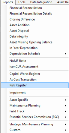 1. Select Risk Register from the Reports Menu: