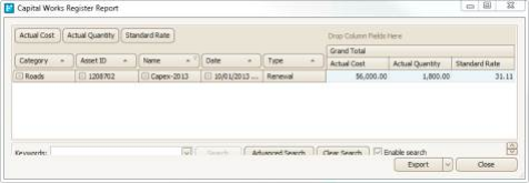 The Capital Works Register provides an organisation's history of capital works on each asset.