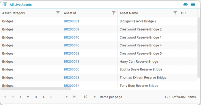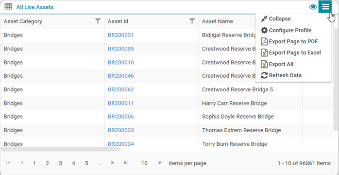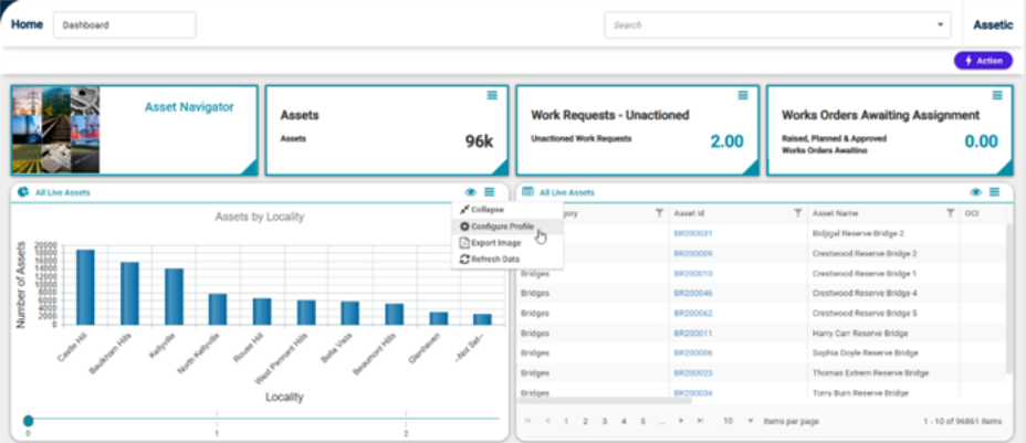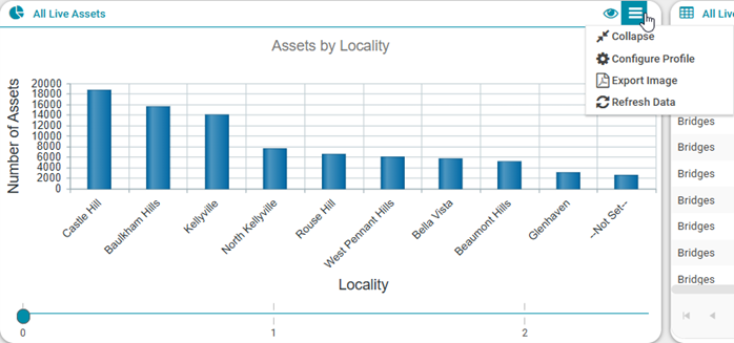 for dashboards on a number of pages that automatically applies further data filters in the context of that page. This ensures that the user does not have to create an excessive amount of Advanced Search Profiles. Eg: The user might create an Advanced Search that returns all assets, but when viewing a particular Asset Category/Asset Record the Contextual filter limits the data displayed (i.e. I will only see records for the currently selected Asset Category/Asset Record).