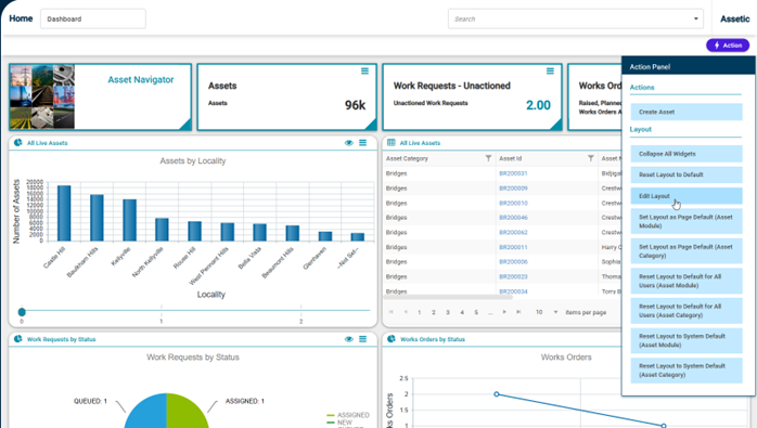 To configure a dashboard, click on ‘Action’ button and select ‘Edit Layout’.