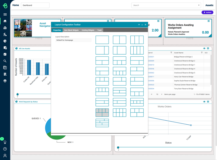 New Widgets can be dragged and dropped into position on their Dashboard from the ‘New Blank Widgets’ tab, and existing Widgets can be removed by dragging and dropping them to the ‘Trash’ tab.