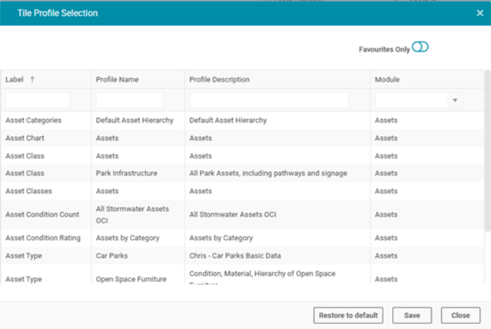 The Favourites Only toggle is used to show only favourites (or show all Profiles)