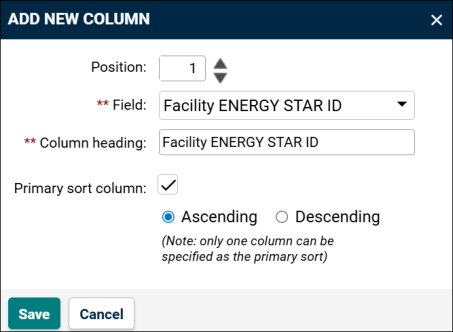 - Position: This determines the order of the columns and can be rearranged later on if needed.