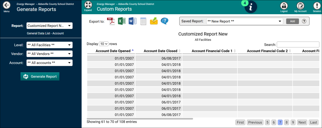 - General Data List includes the Account, Vendor, Meter, or Facility data.