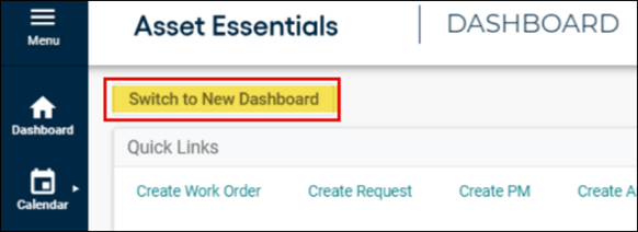 Dashboard Toggle: Switch between the old and new Dashboards by clicking Switch to New Dashboard or Switch to Old Dashboard.