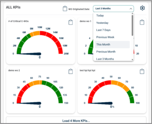 Click Load More button to load the remaining KPIs inside the widget. Each time only 4 KPIs will get loaded.
