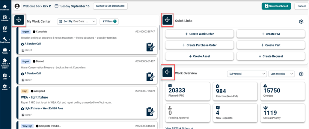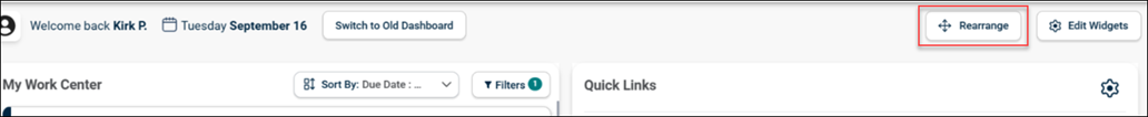The dashboard also supports drag-and-drop functionality, similar to the previous version, allowing users to easily move and rearrange Widgets.