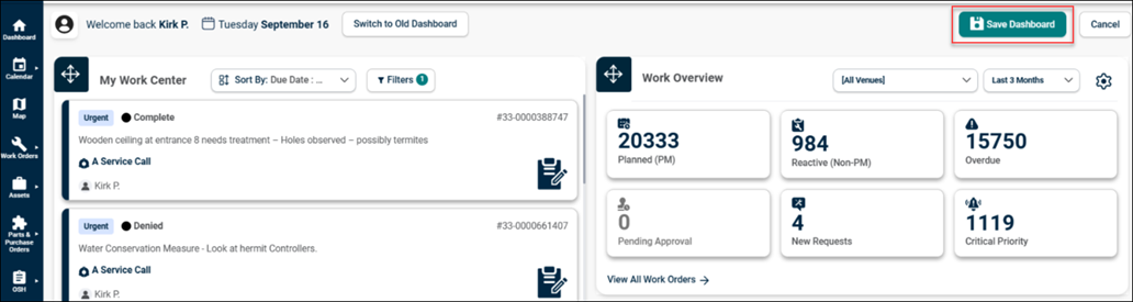 Click Save Dashboard button at the top right to save the customized view.