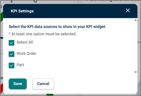 Select the work source (Work Order and Parts) of the KPI you want to access.