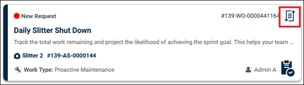 PM Icon: Indicates if the work order is preventive maintenance (PM) related, shown next to the work order number.