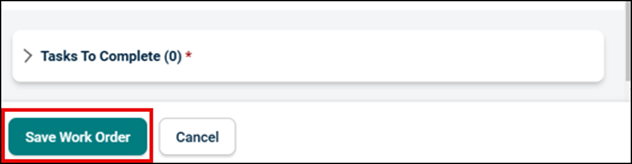 If all the required fields are completed, click Save Work Order button.