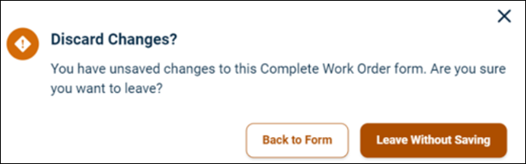 If no fields are filled or updated, click Cancel button or X icon. Otherwise, an error message appears. Choose either to save or discard the changes.