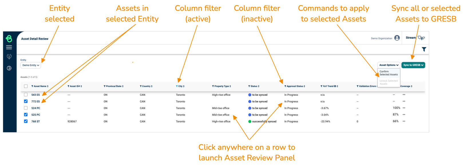 NOTE All Assets in an Entity have their data synced to the GRESB Portal every night. This gives Stream GRESB a daily indication of the state of each Asset’s data, as evaluated by the GRESB Portal and returned in the form of validation messages.