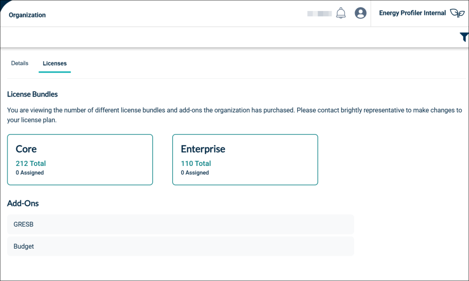 NOTE In order to make any changes to the licenses or add-ons, clients must contact the brightly representative.