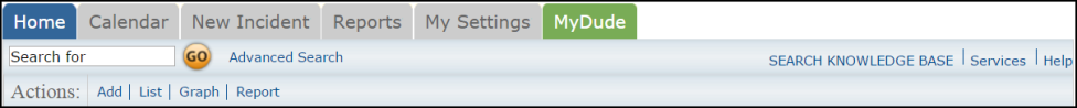 • The Search For box under the Home tab can be used to find a specific incident or group of incidents. Enter a incident ID number to bring up that specific form or enter a keyword to bring up a list of incidents associated with that term.
