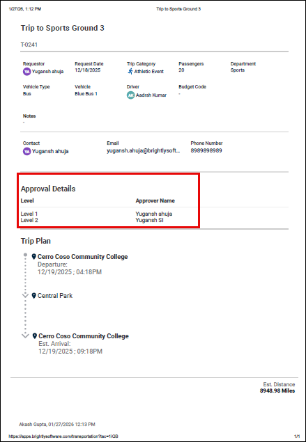 NOTE Under the Approval Details section of the printed trip request, you can find the information about who has approved the trip.