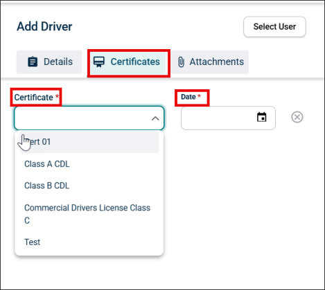 NOTE If the driver does not exist in the system, see the Manage Users article to add the driver.