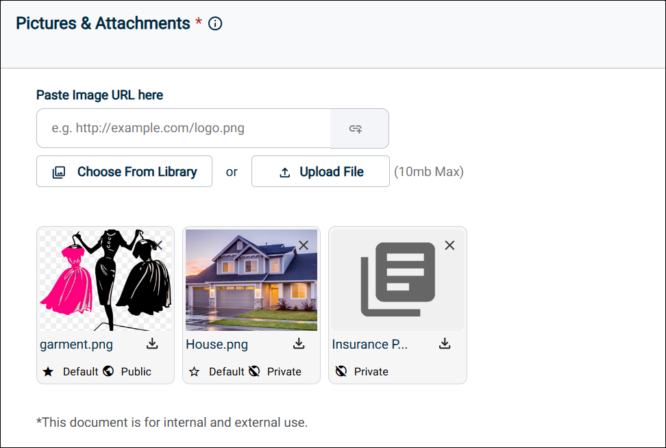 Public / Private toggle: Click the icon to make an image or document as Public or Private depending on your requirement. The Default image for an event is always set as Public. Attachments that are marked as public are displayed on the public calendar.