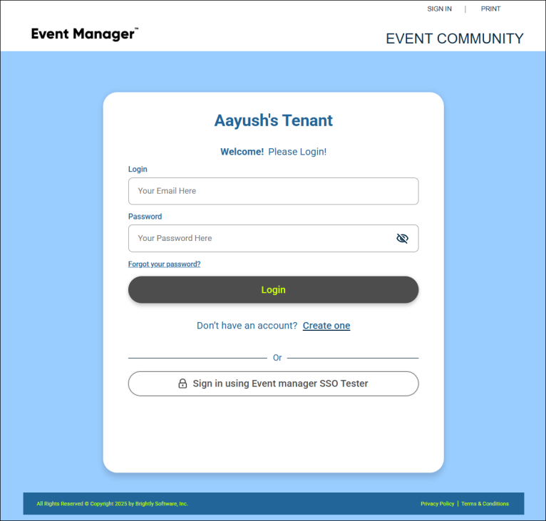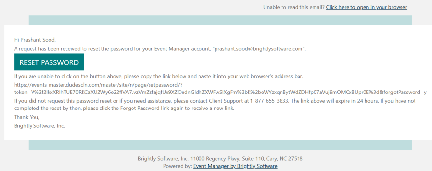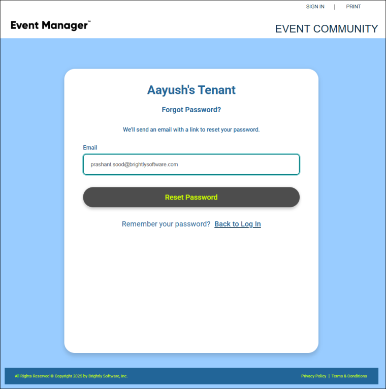 NOTE Congratulations! The password is successfully updated and you are logged in and redirected to the Event Manager Dashboard.