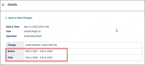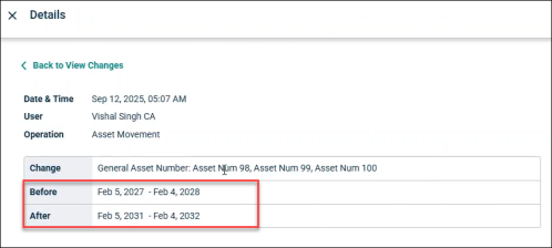 For example, if multiple assets are moved together, then Before and After is recorded along with all the asset numbers.