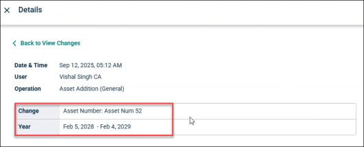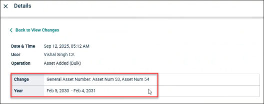 Any changes made in the asset registry gets reflected in the Forecast and gets logged in the Change log. However, only the action is recorded and no detail of it is present.