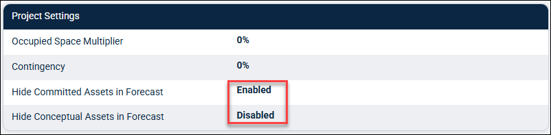 Once this option is enabled in the project settings, all assets linked to projects in either the Conceptual or Committed state will be excluded from any forecasts created from that point forward. Any forecasts that were generated before enabling this configuration will remain unaffected and will not reflect the exclusion settings. To apply any changes made in the Project Settings, you must create a new forecast; only newly created forecasts will incorporate the latest configuration updates.