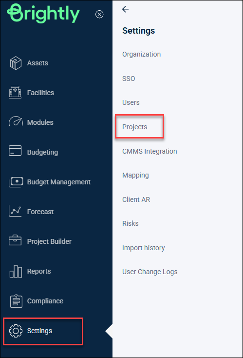 • Go to Settings > Projects.